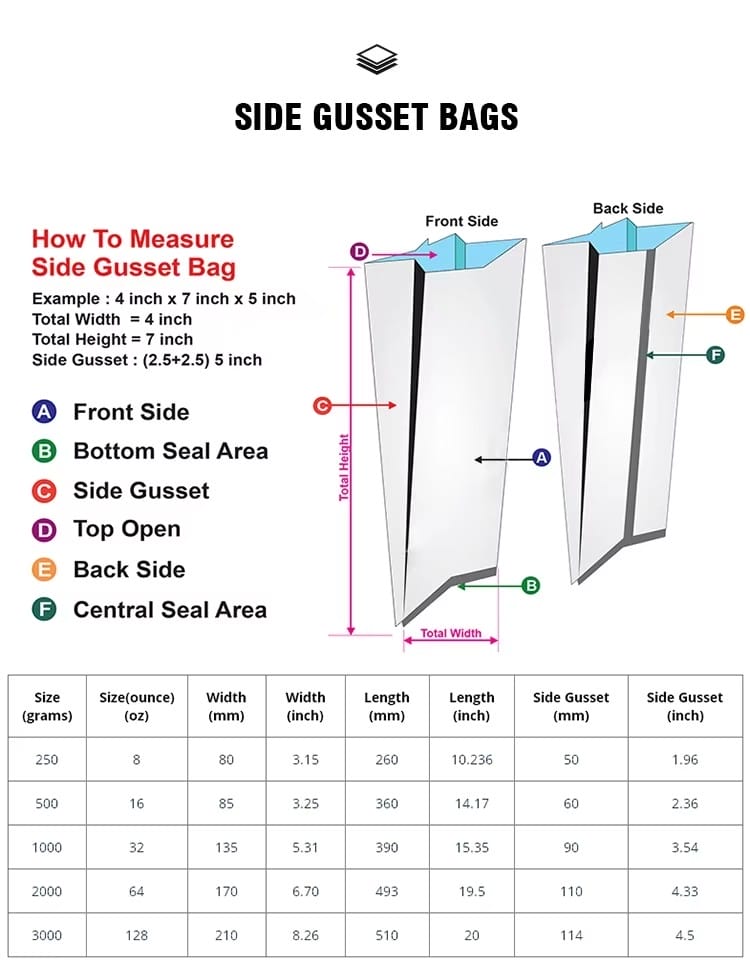 1. Stand up 1g 3.5g 7g 14g 28g, 70g, 100g, 150g, 250g, 500g, 1kg, 3kg, 4kg, 5kg |